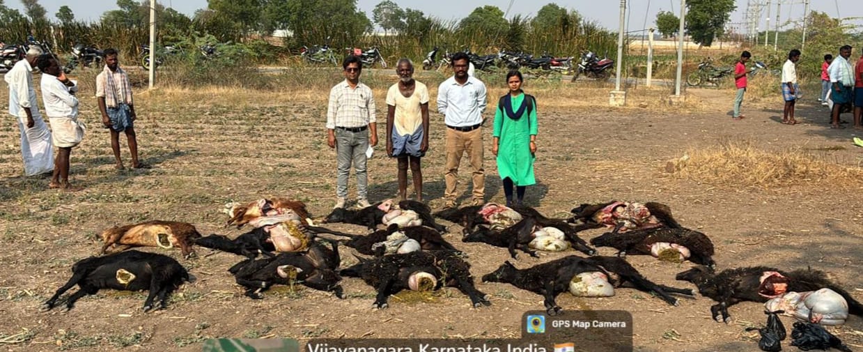 ಕೂಡಲೇ ಪಶು ಇಲಾಖೆಯ ಸಹಾಯಕ ನಿರ್ದೇಶಕ ಡಾ.ಸೂರಪ್ಪ ಅವರಿಗೆ ದೂರವಾಣಿ ಮೂಲಕ ವಿಷಯ ತಿಳಿಸಿದ್ದು ಸ್ಥಳಕ್ಕೆ ವೈದ್ಯರ ತಂಡ ಭೇಟಿ ನೀಡಿದೆ. ಸ್ಥಳದಲ್ಲಿಯೇ ಅಸ್ವಸ್ಥಗೊಂಡ ಕೆಲ ಕುರಿಗಳಿಗೆ ಪ್ರಥಮ ಚಿಕಿತ್ಸೆ ನೀಡಿದ್ದಾರೆ. 30 ರಿಂದ 35 ಕುರಿಗಳಲ್ಲಿ 14 ಕುರಿಗಳು ಸ್ಥಳದಲ್ಲೇ ಸಾವನ್ನಪ್ಪಿವೆ.